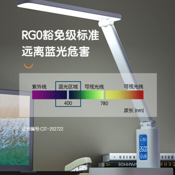 得力(deli)LED折疊臺燈 時間溫度日期同屏顯示帶鬧鐘 RG0級減藍光 床頭宿舍書桌工作臺燈 17859