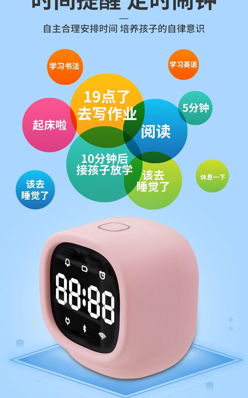得力(deli)學(xué)生電子鬧鐘AI智能語音互動迷你多功能充電鬧鐘可愛卡通兒童禮物 83650-藍(lán)色