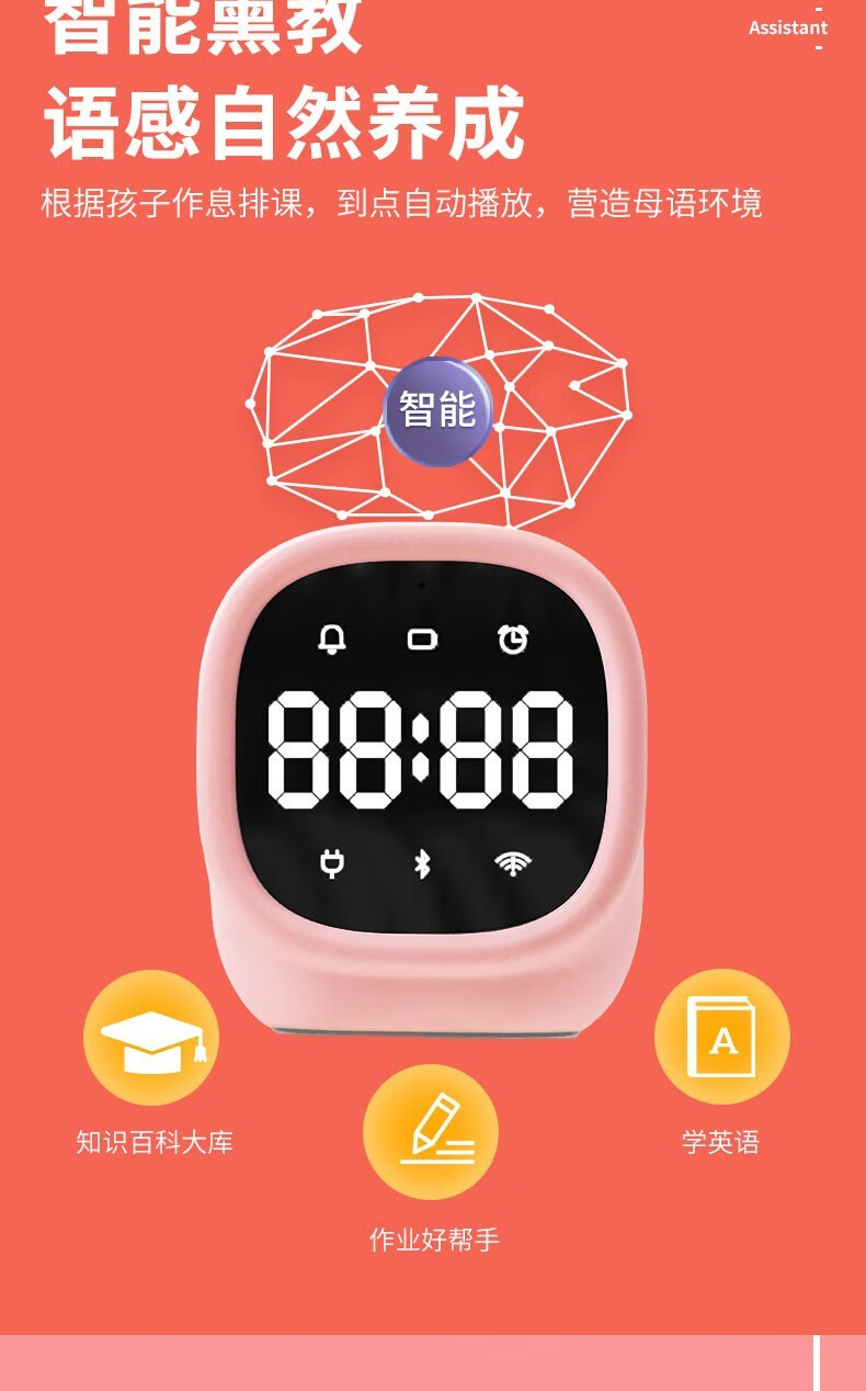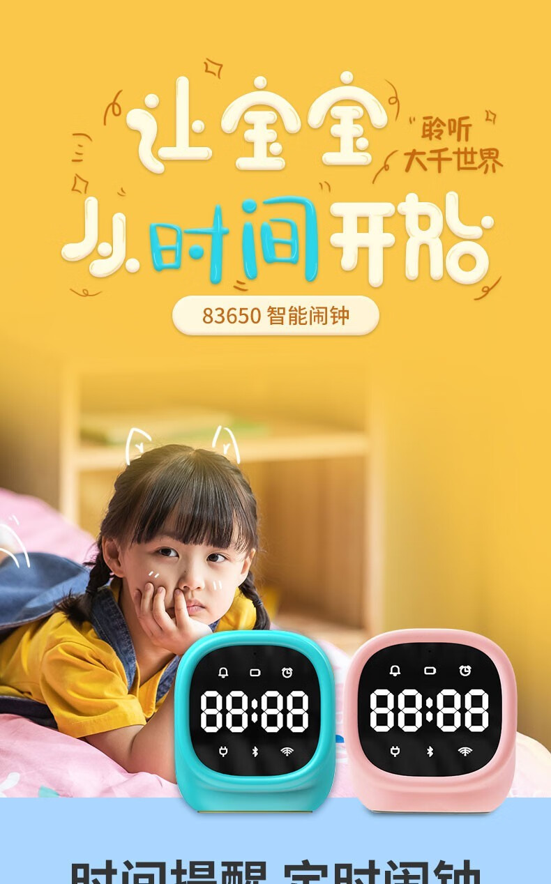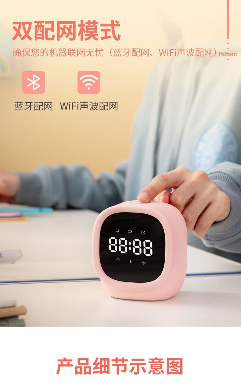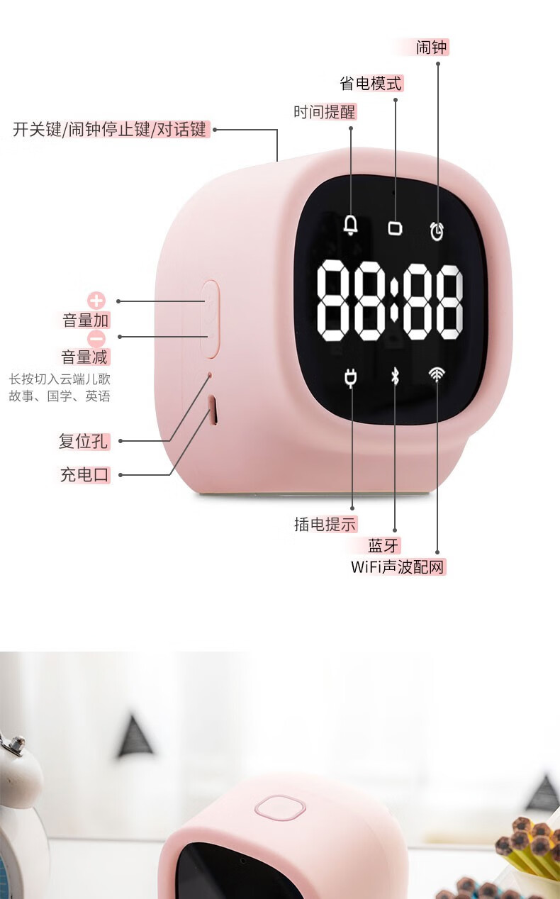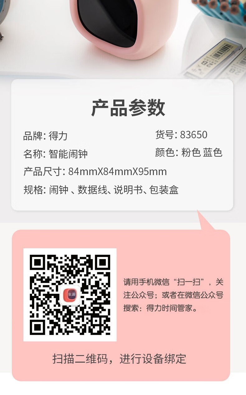 得力/deli 83650 座鐘 學(xué)生電子鬧鐘AI智能語音互動迷你多功能充電鬧鐘可愛卡通兒童禮物