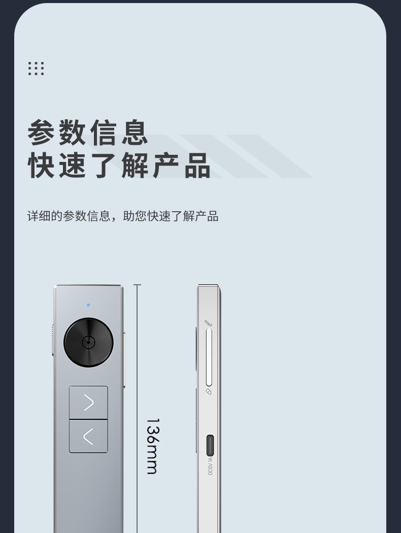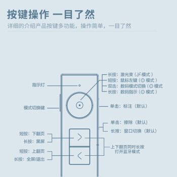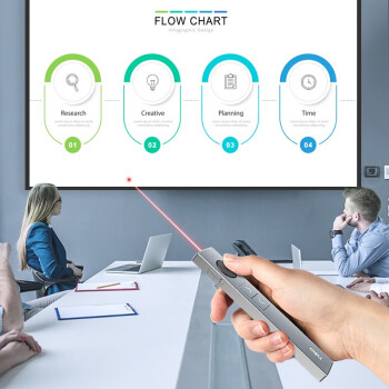 得力(deli) 激光翻頁筆 無線演示器空中鼠標(biāo) 聚光燈PPT投影筆LED液晶大屏 藍(lán)牙連接綠光 50682G 銀灰色
