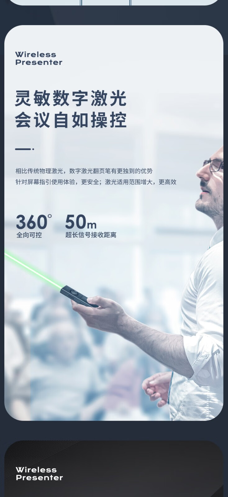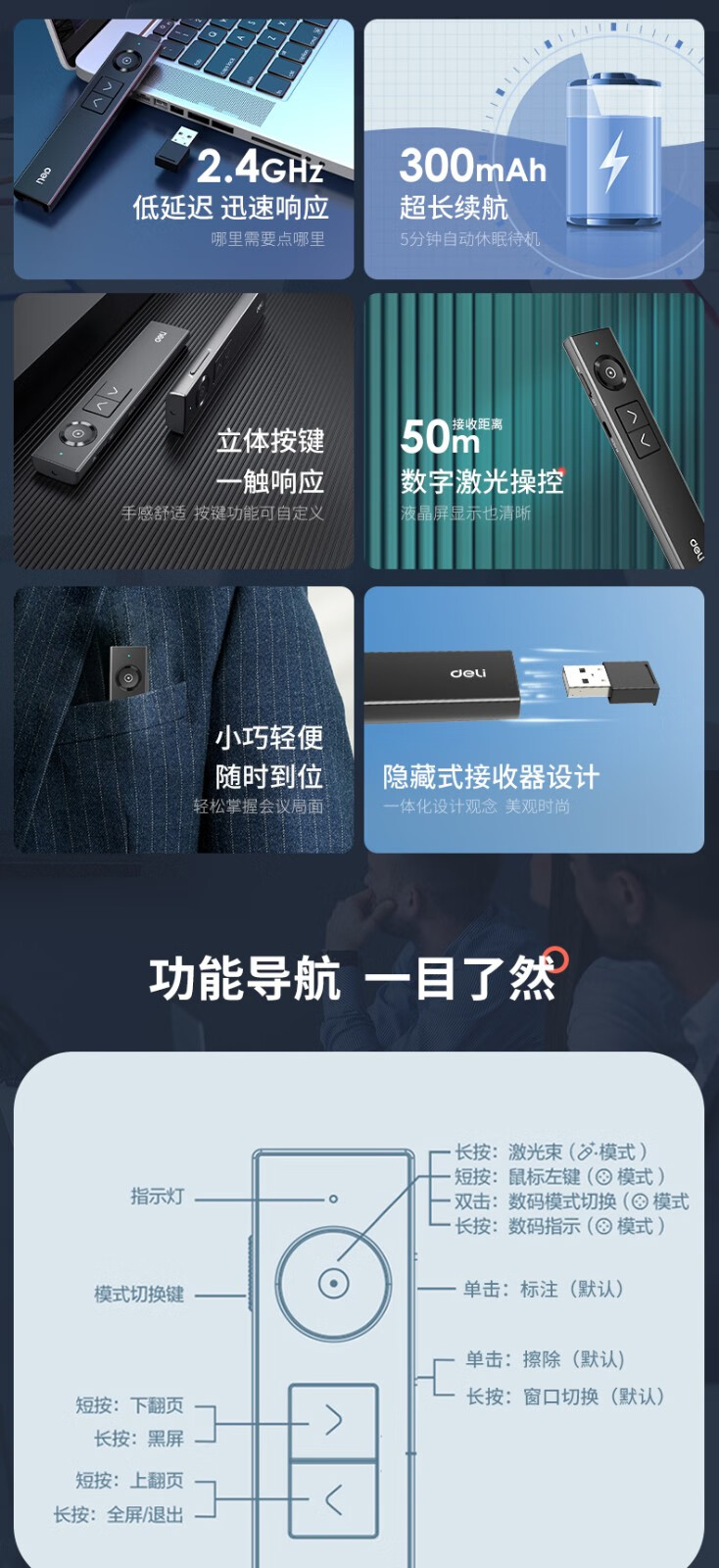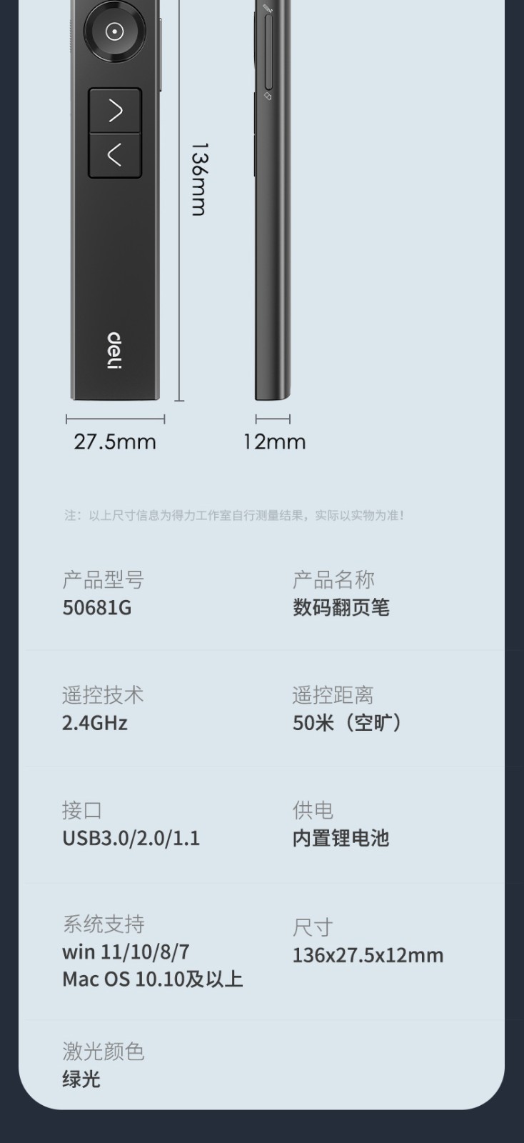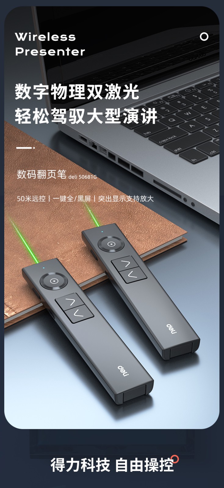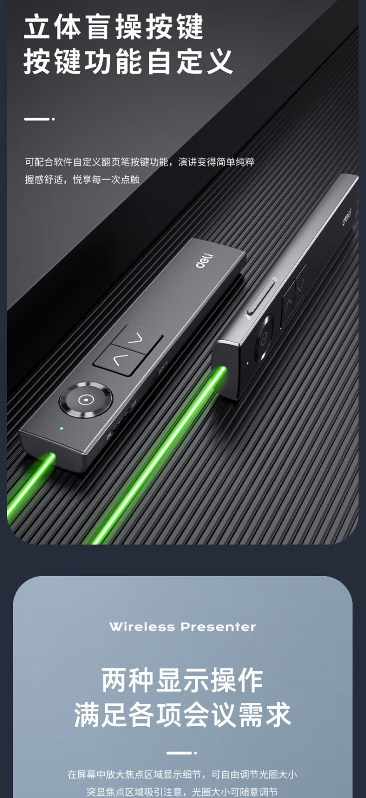得力/deli 50682G 激光筆 激光翻頁筆 無線演示器空中鼠標(biāo) 聚光燈PPT投影筆LED液晶大屏 藍(lán)牙連接綠光