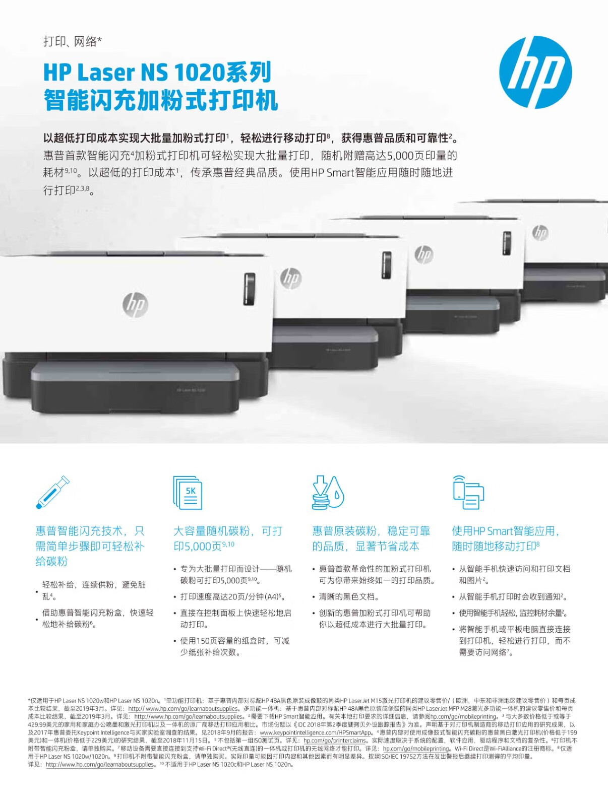 惠普HPNS1020N老款黑白激光單打印智能加粉移動(dòng)wifi谷歌大印量全新行