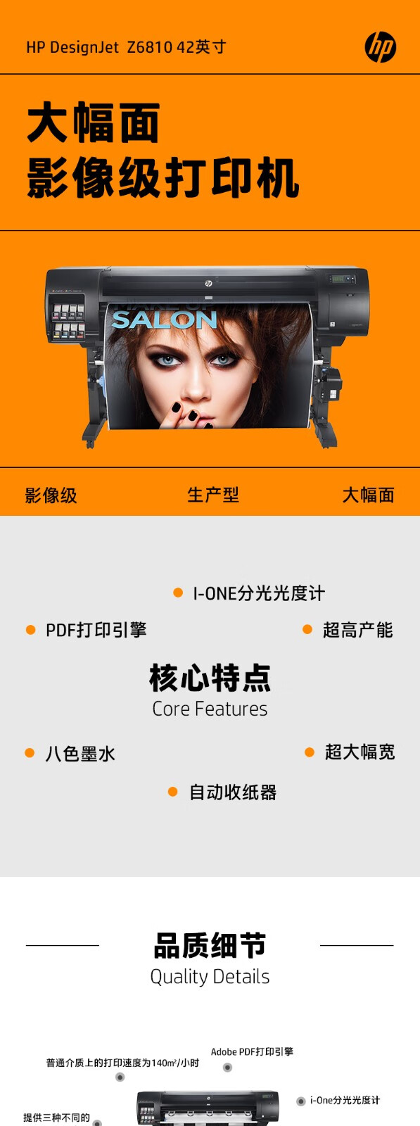 hp惠普DesignJet Z6810大幅面彩色打印機42英寸高清影像級無線8色商用圖形印藝繪圖儀 HP Z6810大幅面打印機42英寸