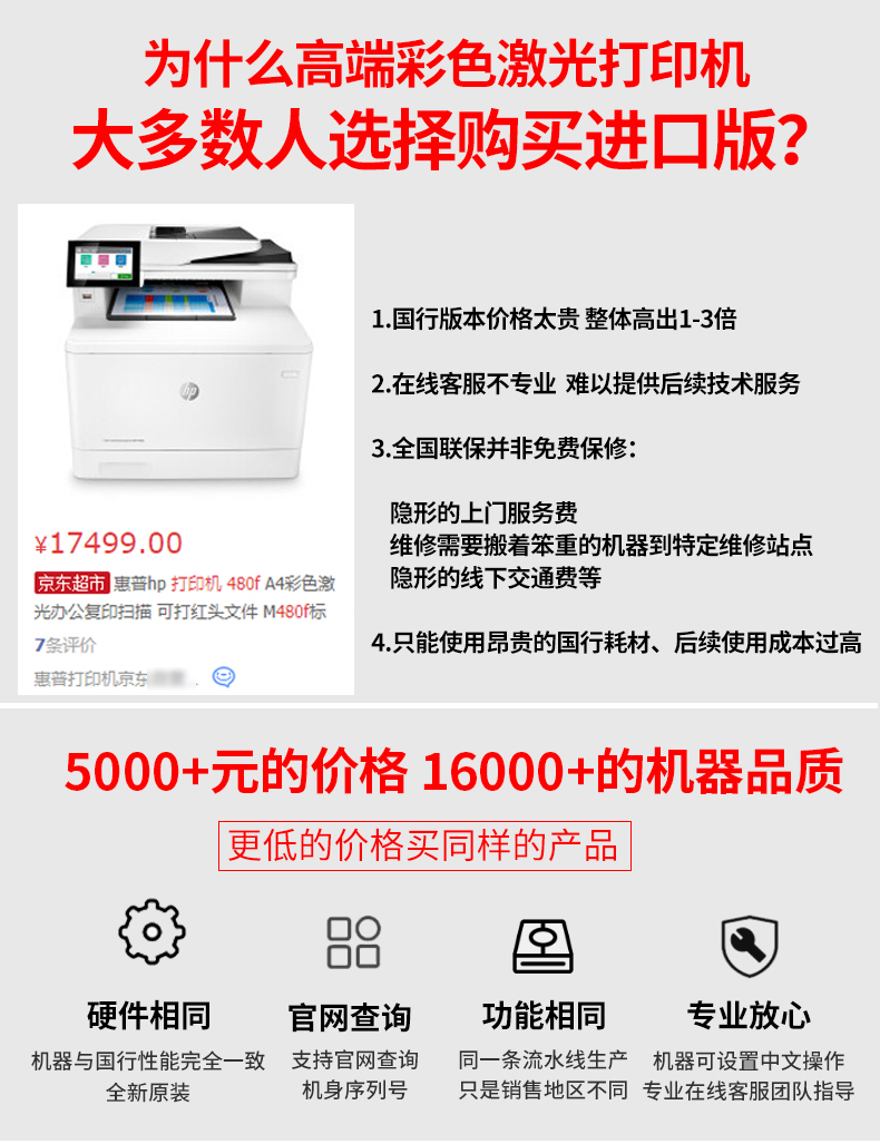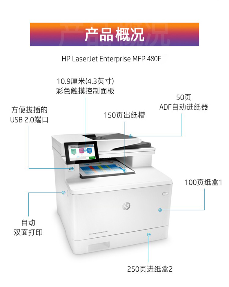 惠普/HP M480F A4 彩色打印機 彩色激光打印機自動雙面復印A4一體機商務辦公【有線四合一+全自動雙面】