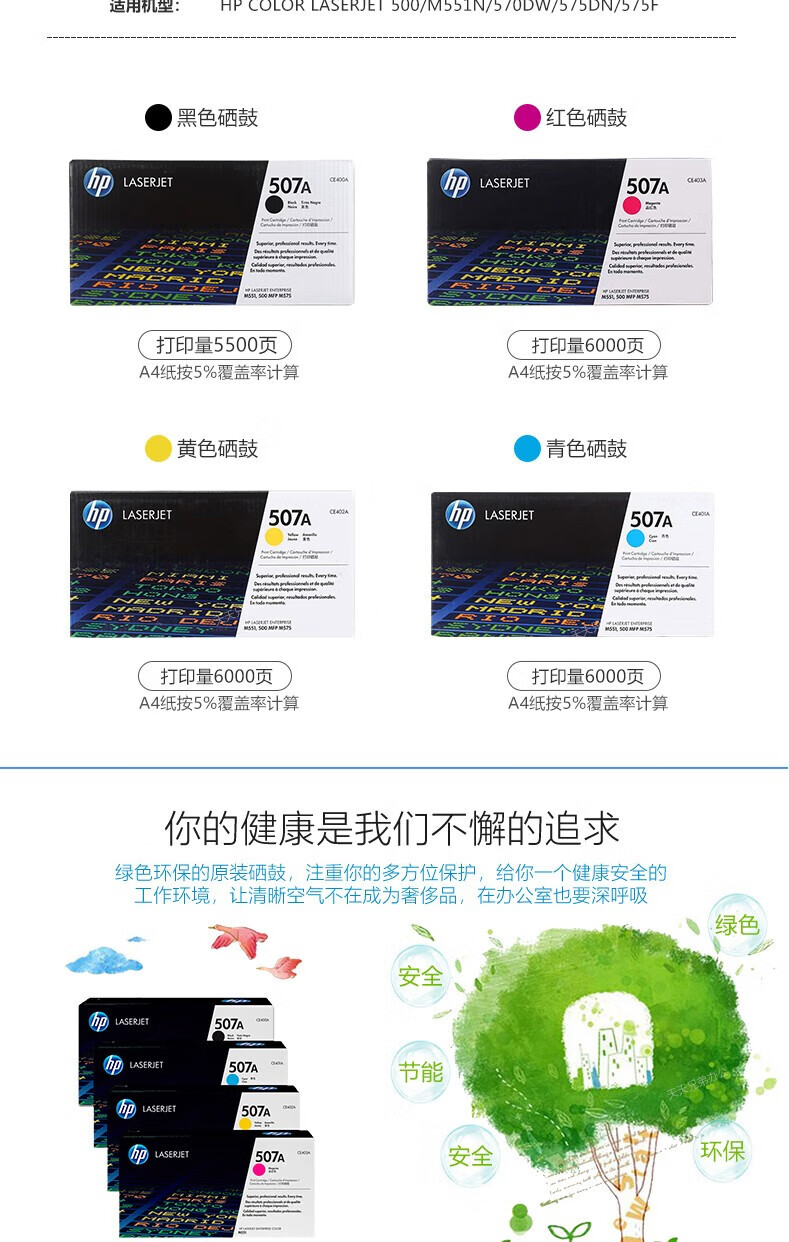 惠普(HP)CE400A/507a原裝硒鼓適用551n/575dn/fw/570dw打印機(jī) 507A硒鼓品紅(CE403A)約6000頁