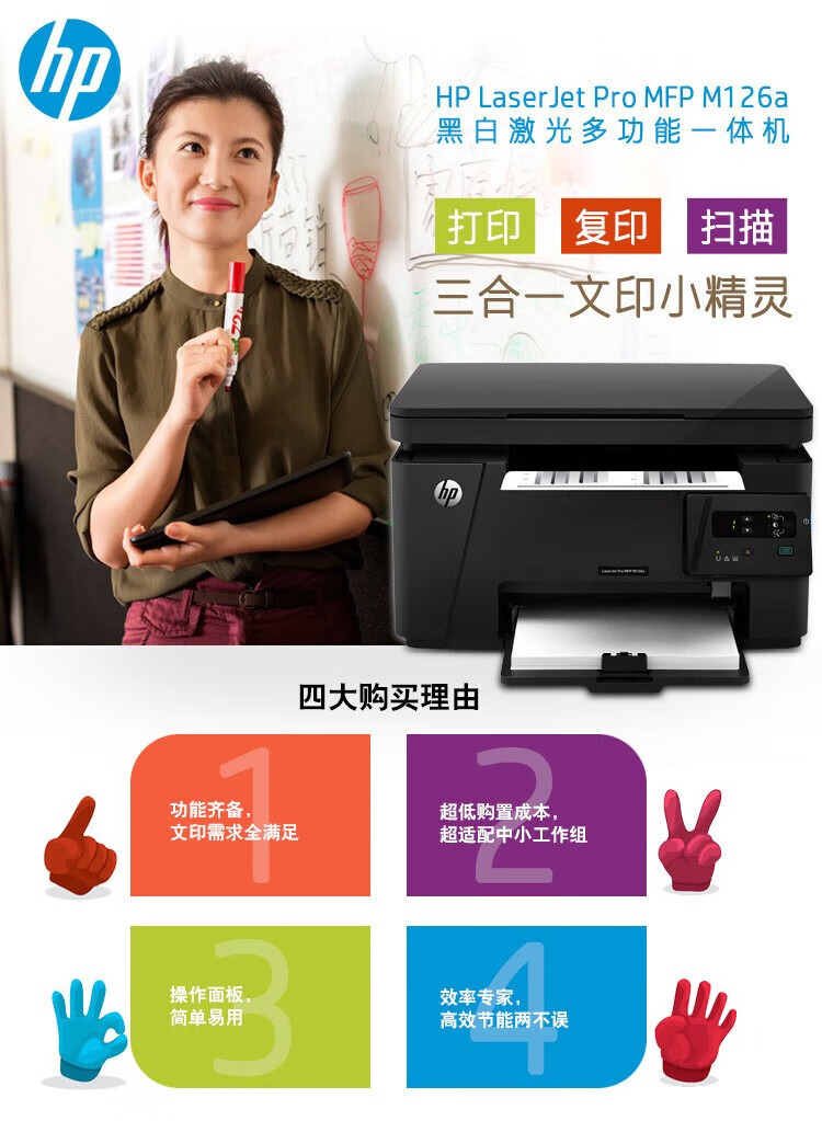 惠普(HP)P1106A4黑白激...