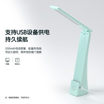 得力(deli)LED可折疊臺燈 觸控學生宿舍臥室床頭燈 可充電1200mA 17855綠