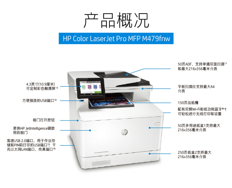 惠普/HP M479fnw A4 彩色打印機(jī) 彩色激光多功能一體機(jī) 無線打印復(fù)印掃描傳真四合一 自動(dòng)輸稿器