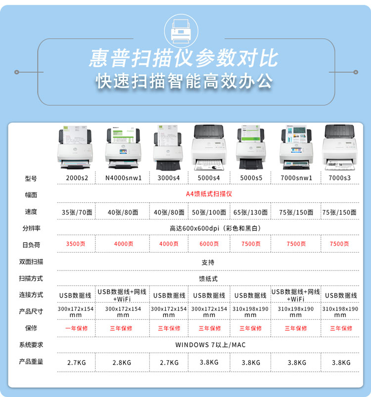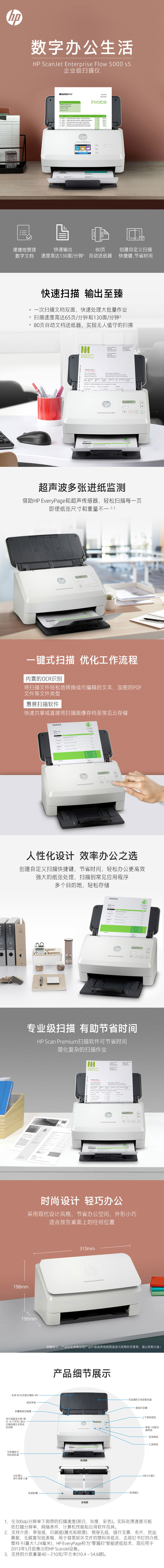 惠普/HP SJ5000s5 掃描儀 高速掃描彩色辦公A4文件批量自動進紙票據(jù)快遞單發(fā)票雙面連續(xù)進紙