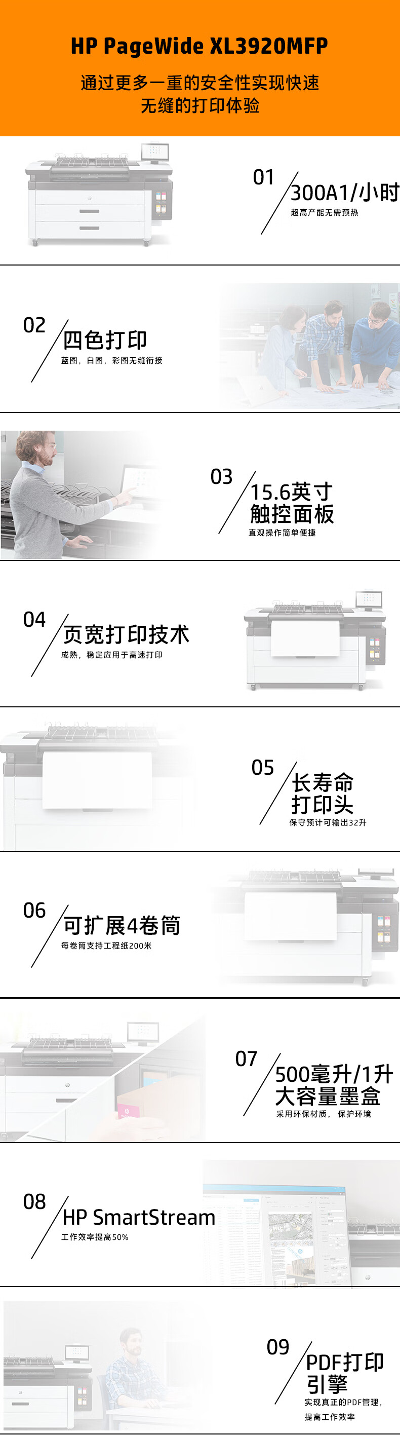 惠普(hp) PageWide XL3920 MFP 專業(yè)高速彩色寬幅打印大幅面打印機(jī)繪圖儀一體機(jī) 40英寸3920 MFP 一體機(jī)