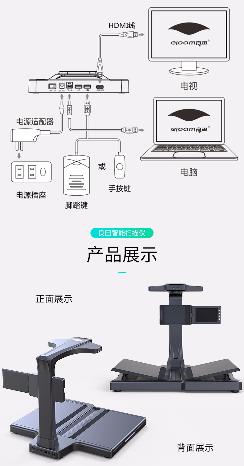 良田(eloam)高拍儀掃描儀2200萬像素高清定焦語音控制高速掃描儀辦公家用文件書籍 BS3000P