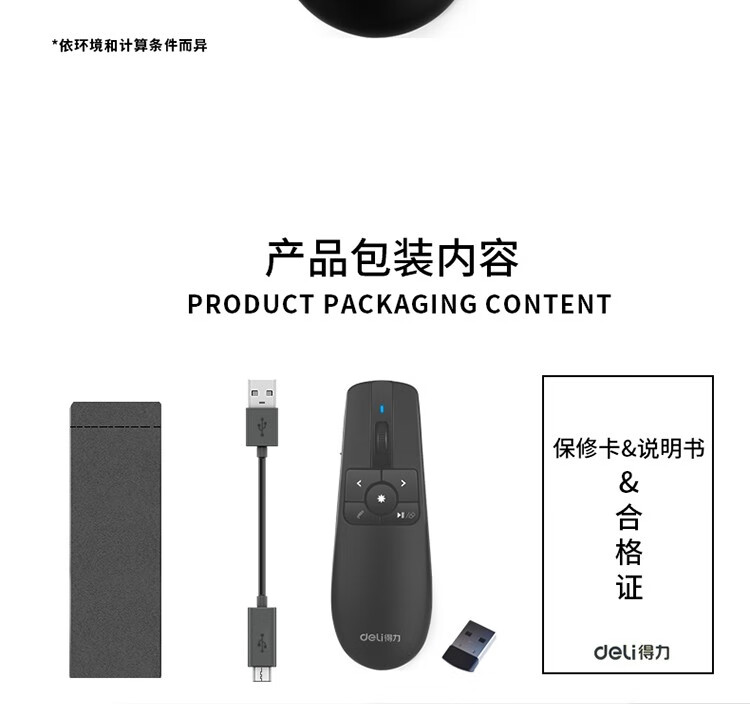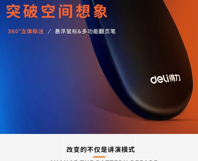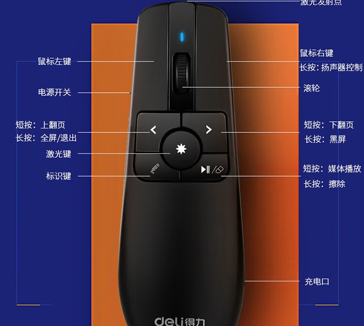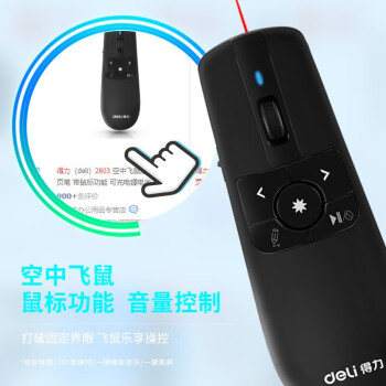 得力(deli) 空中鼠標(biāo)飛鼠 可充電液晶屏激光筆 教鞭 PPT無線演講演示器翻頁器 幻燈片遙控器翻 紅光 2803