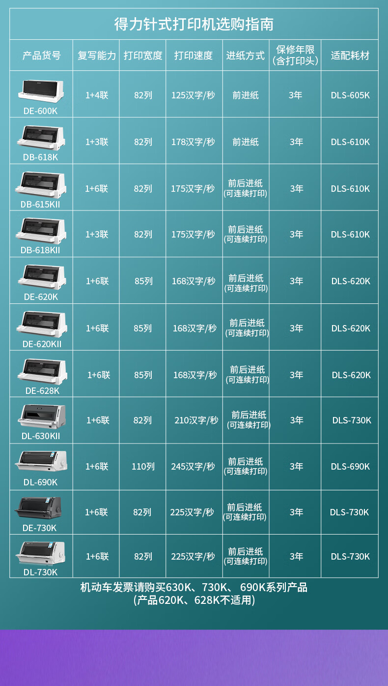 得力(deli)DL-730K 發(fā)票針式打印機(jī) 快遞單打印(82列平推式)