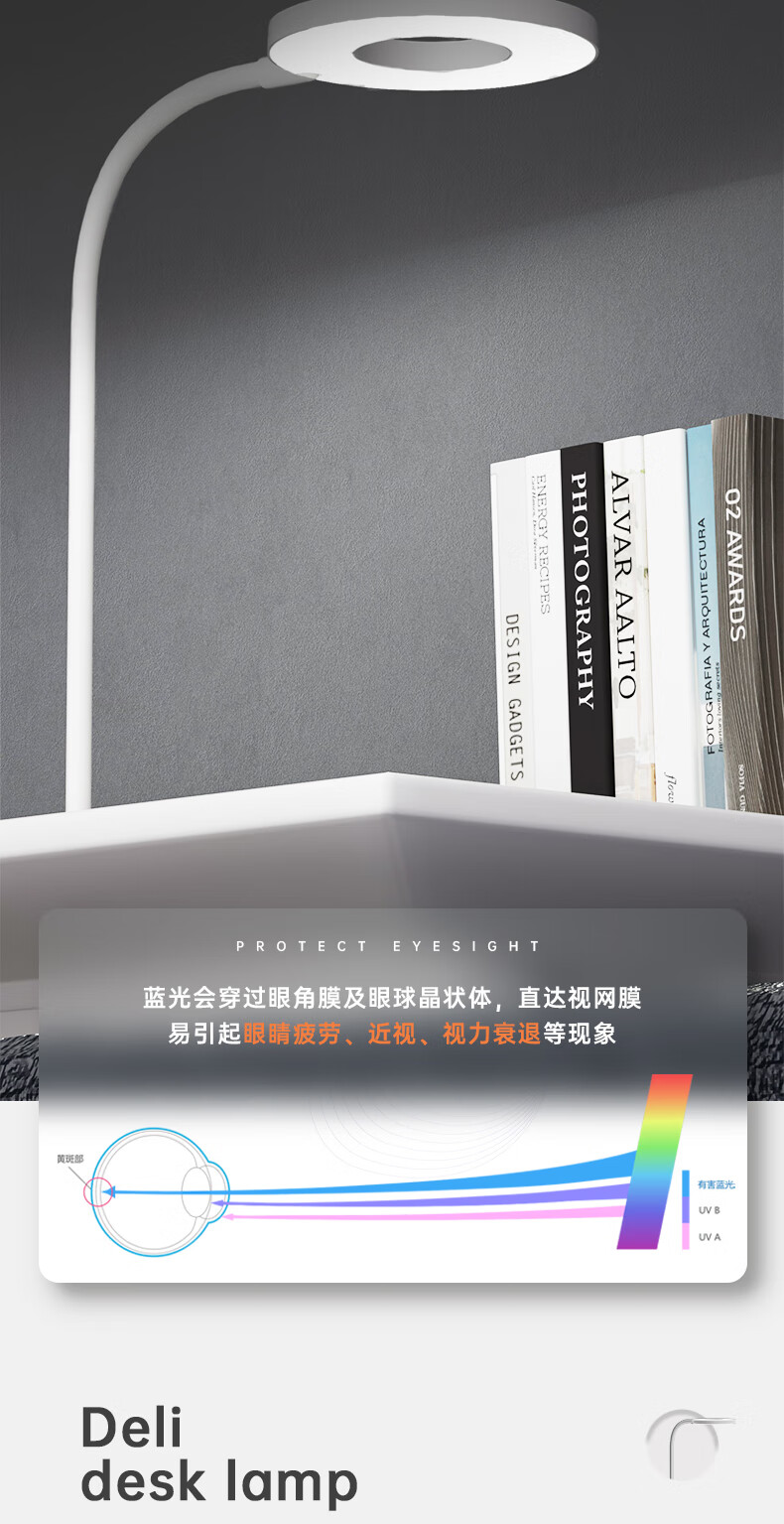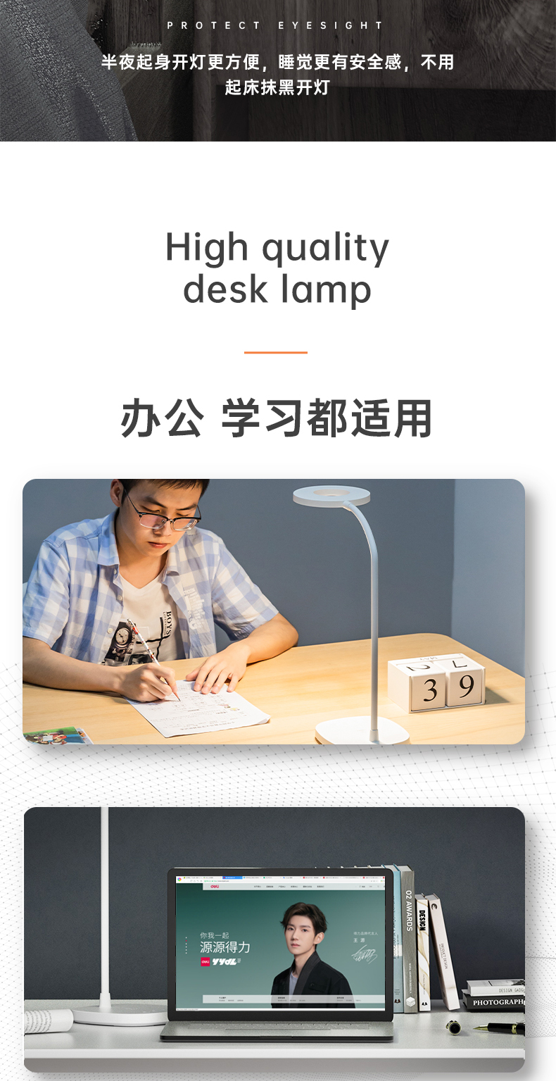 得力/deli 4305 臺燈/壁燈/床頭燈/落地?zé)?AA級減藍光臺燈 工作閱讀觸控調(diào)光兒童學(xué)生學(xué)習(xí)臺燈