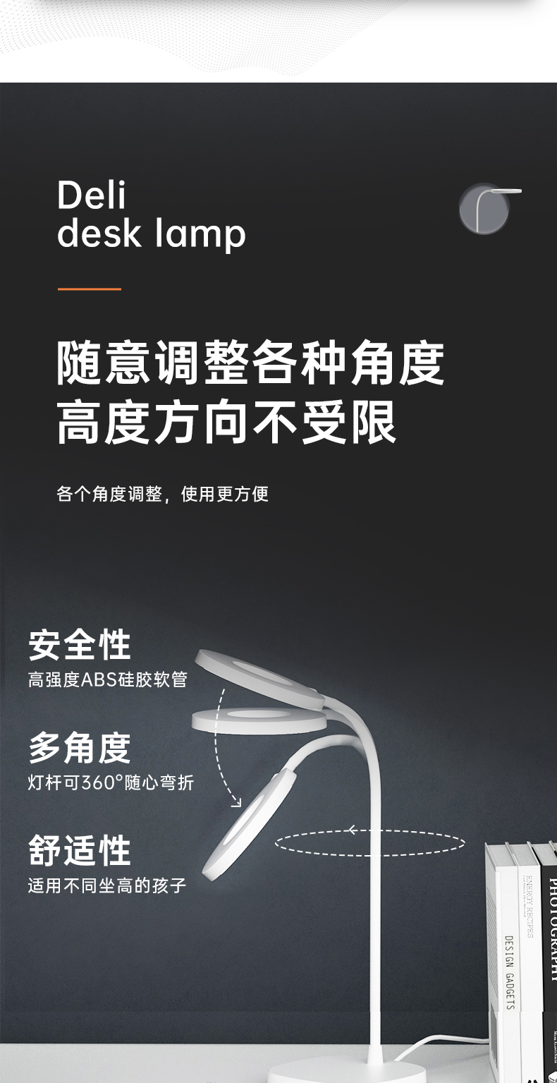 得力(deli)LED臺燈 AA級減藍光臺燈 工作閱讀觸控調(diào)光兒童學(xué)生學(xué)習(xí)臺燈 4305